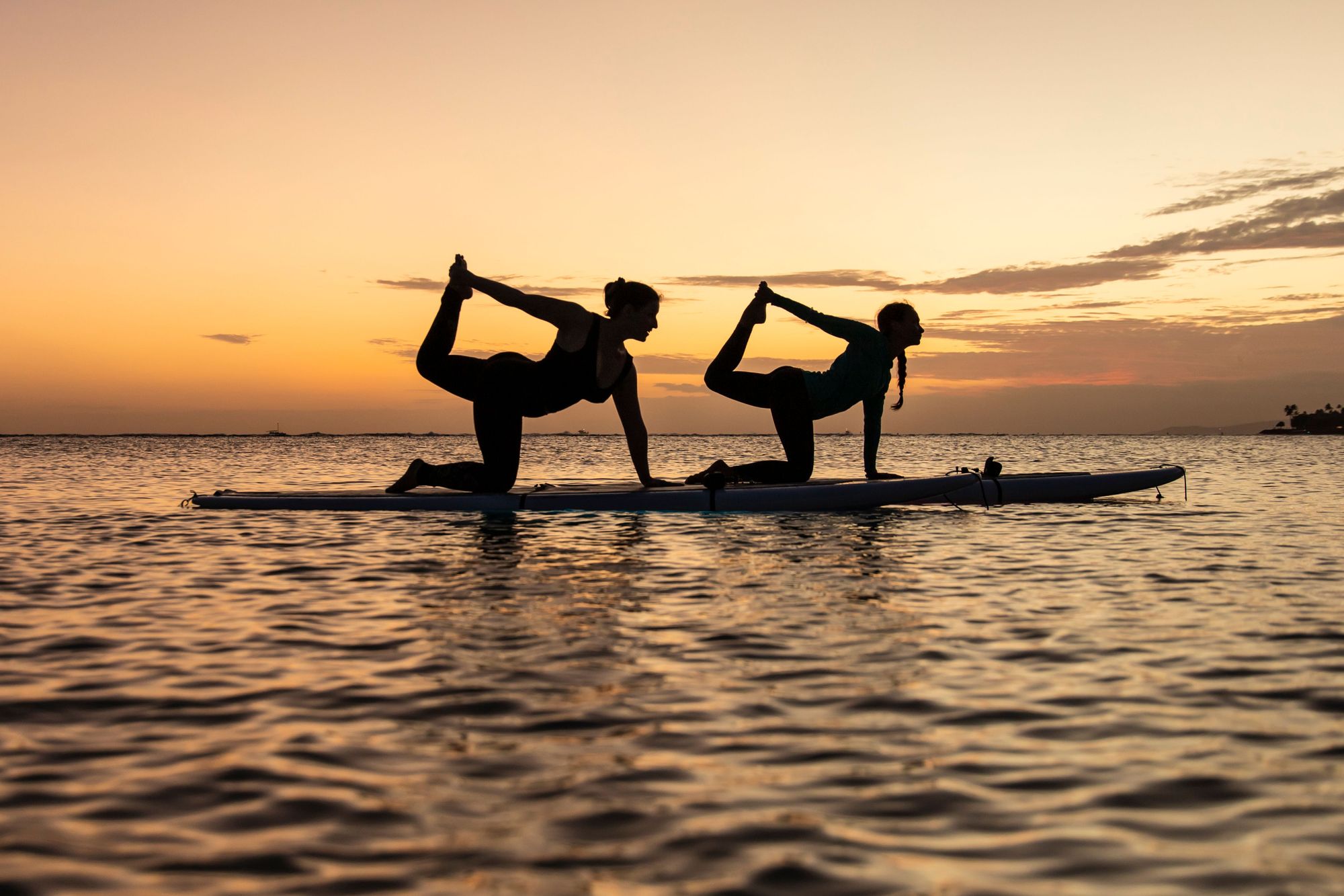 Participate in a 75-minute yoga session on the water during sunset.
